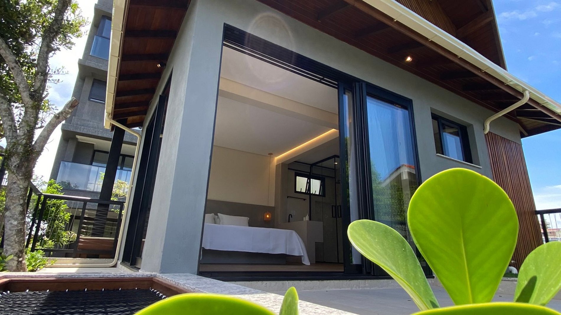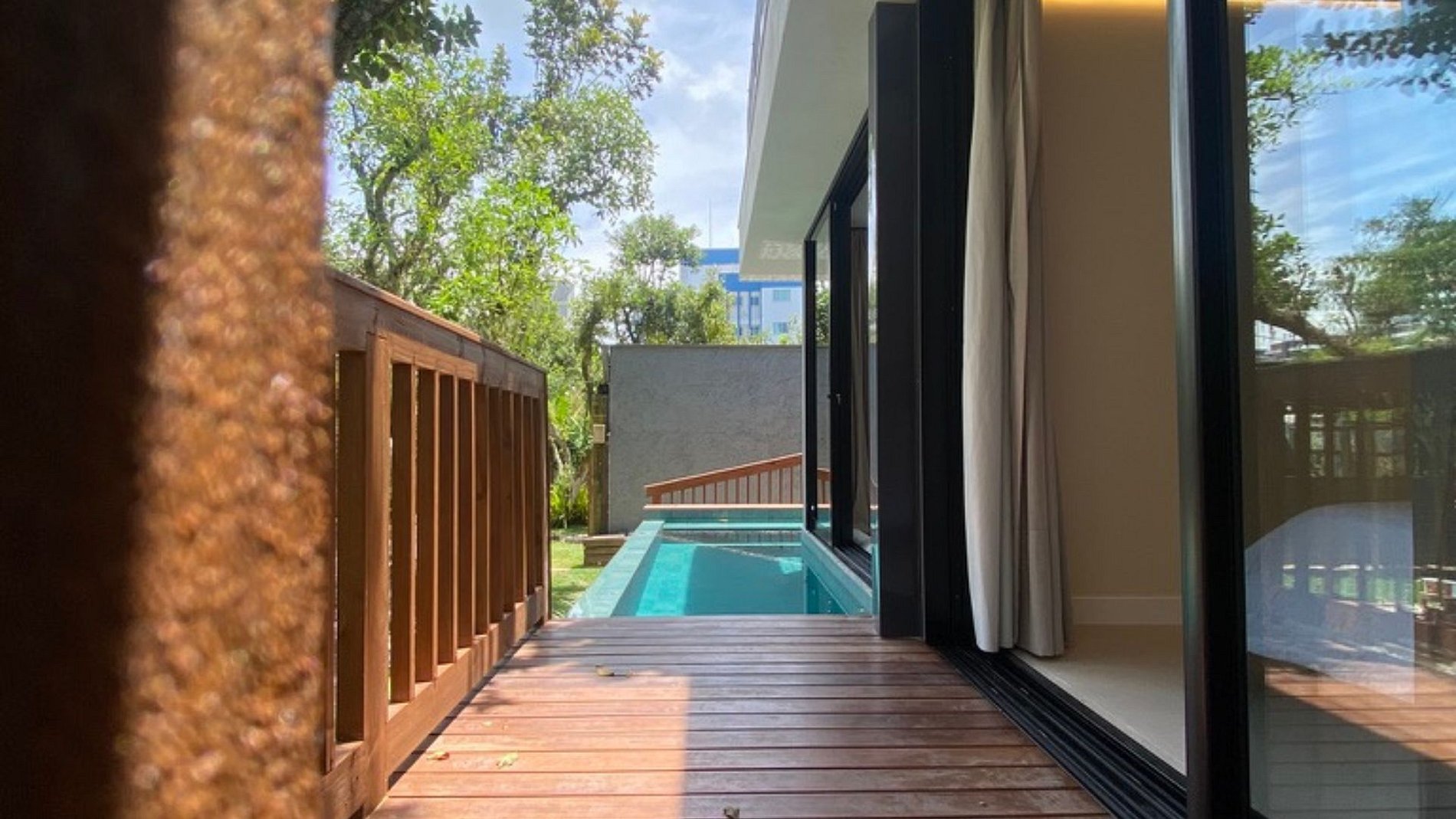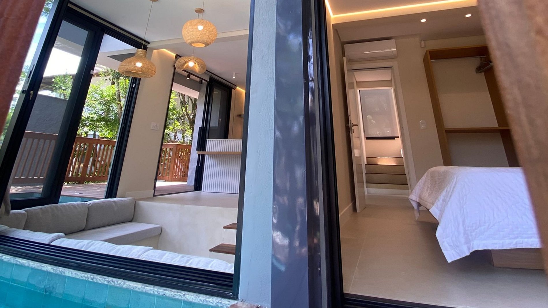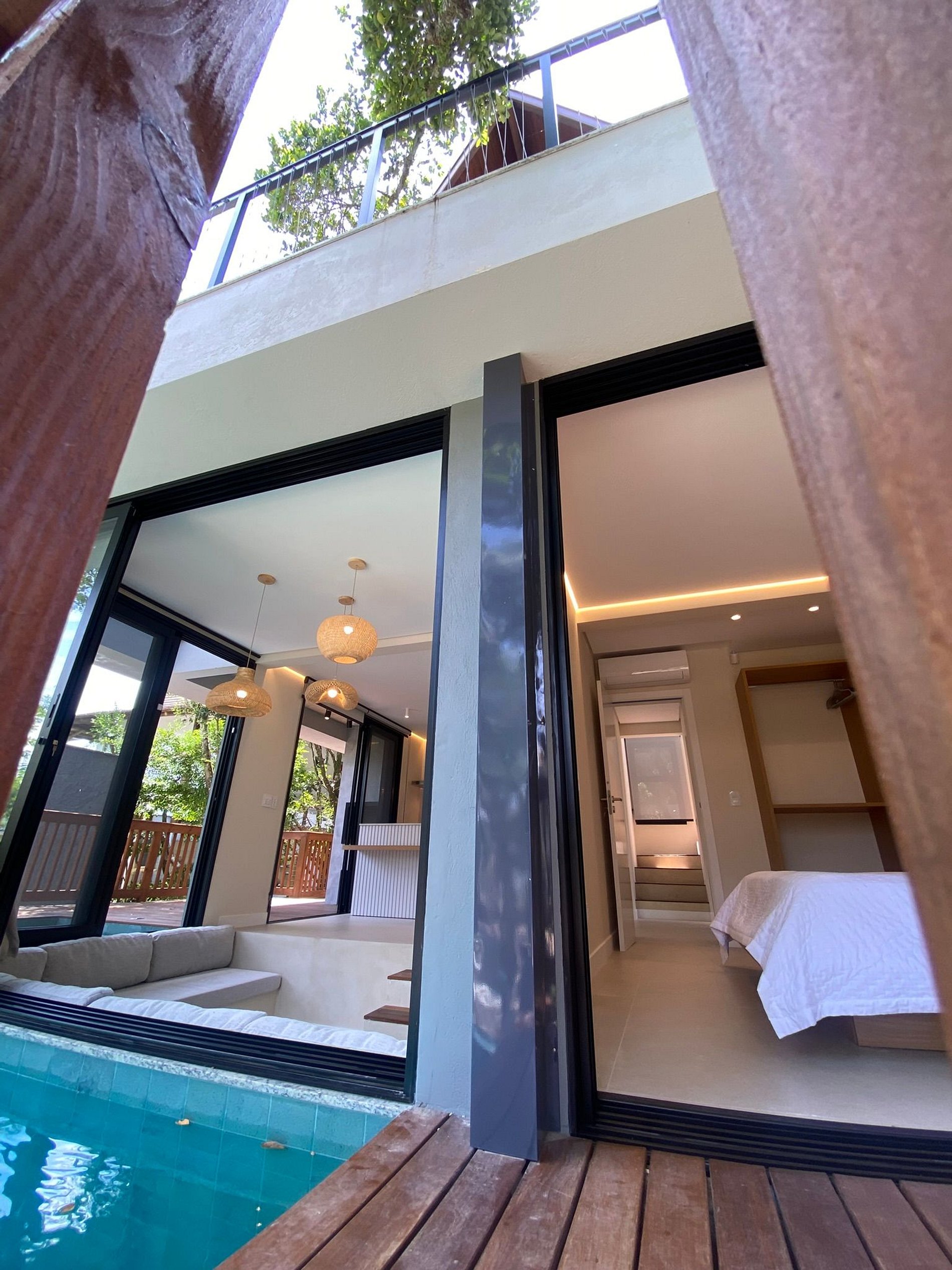 Quarto com varanda e acesso direto à piscina
