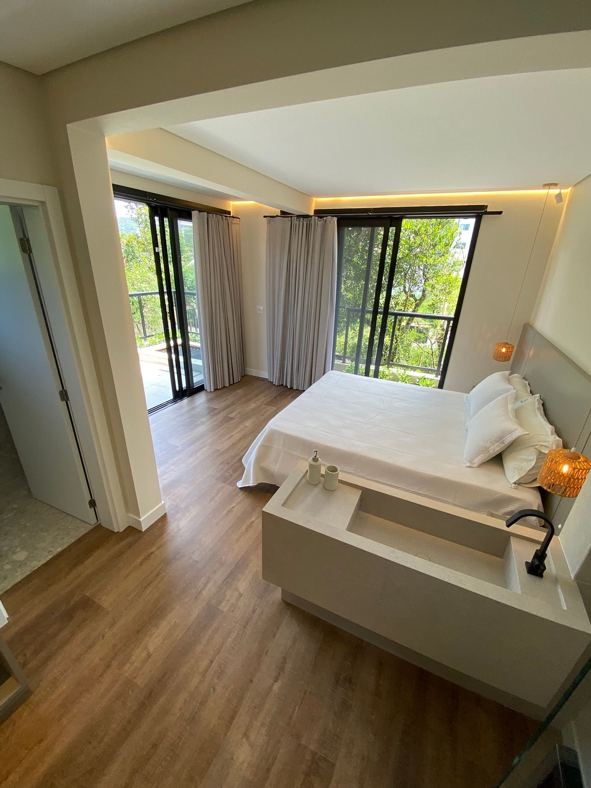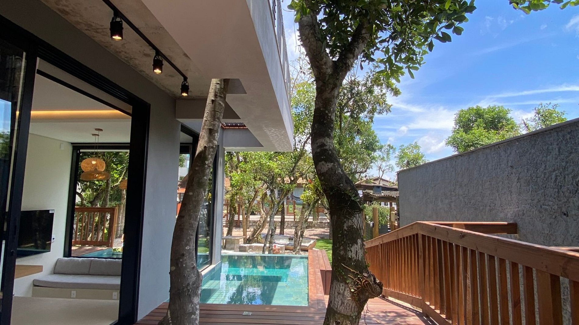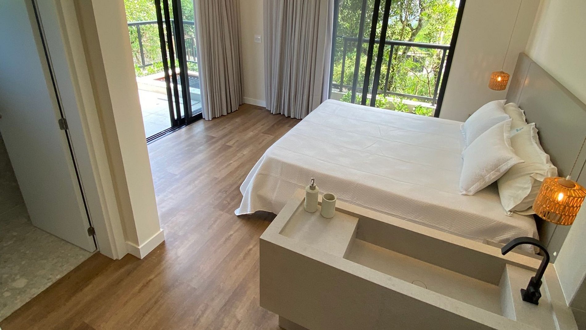 Quarto com varanda e acesso direto à piscina