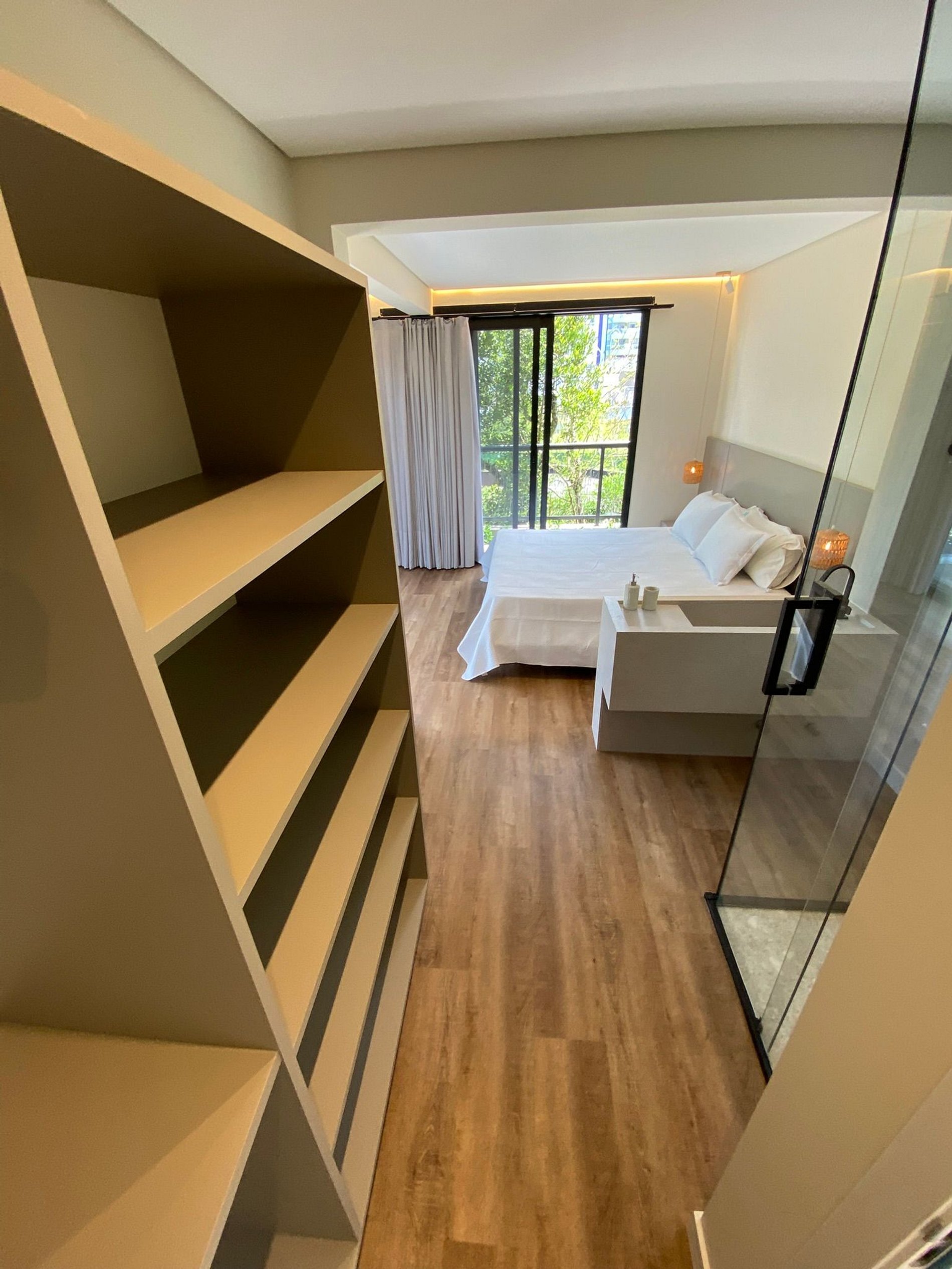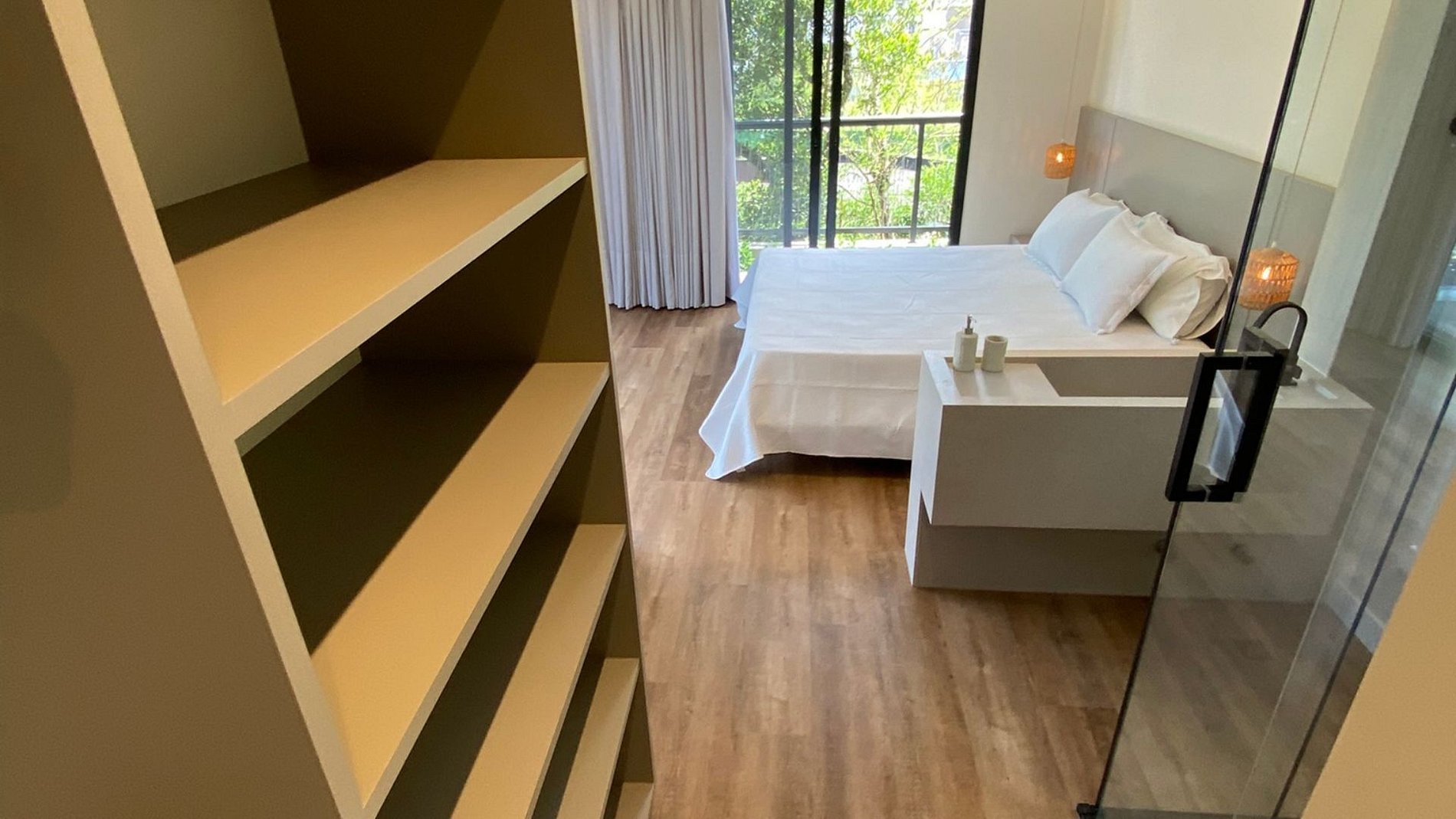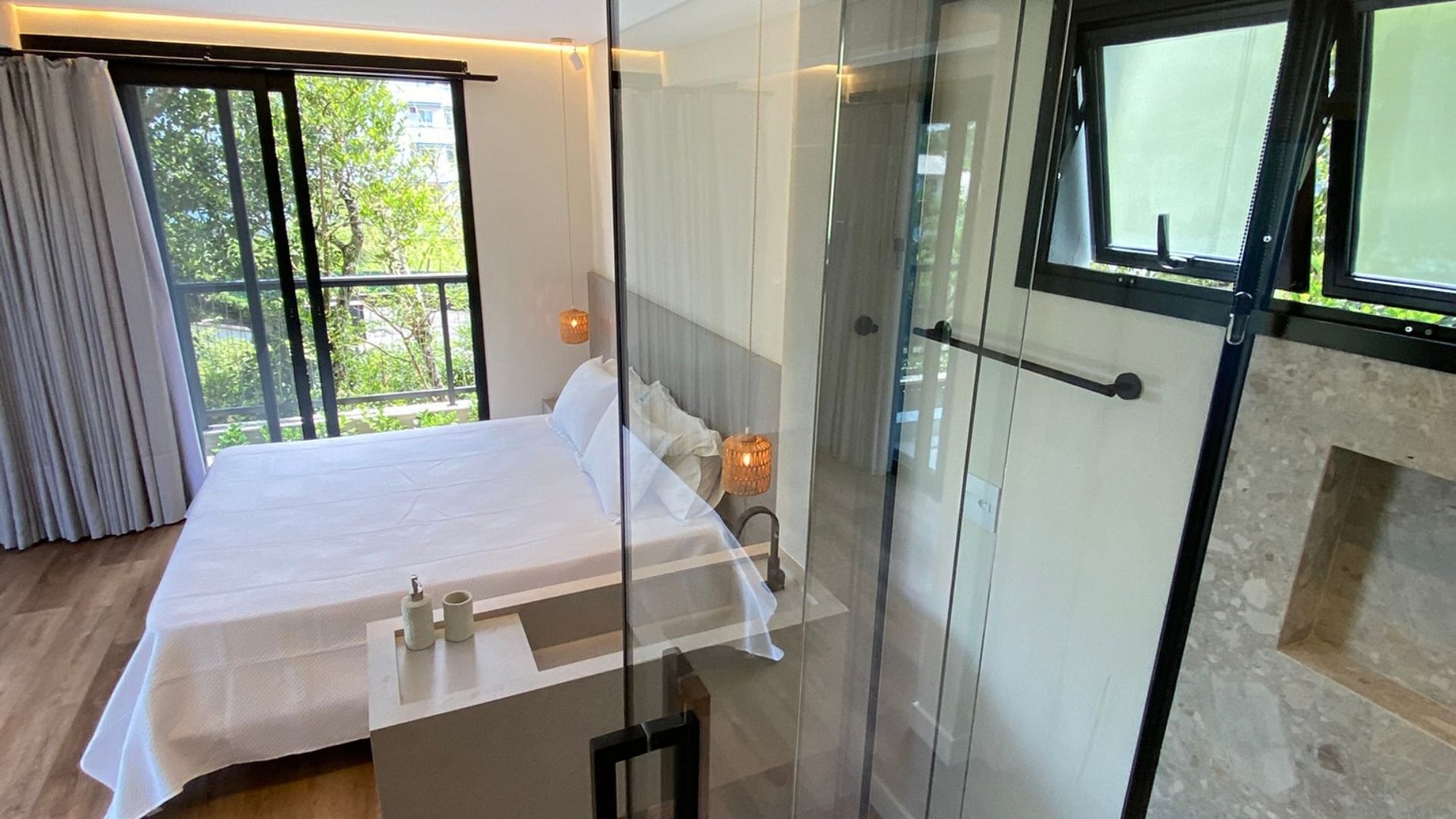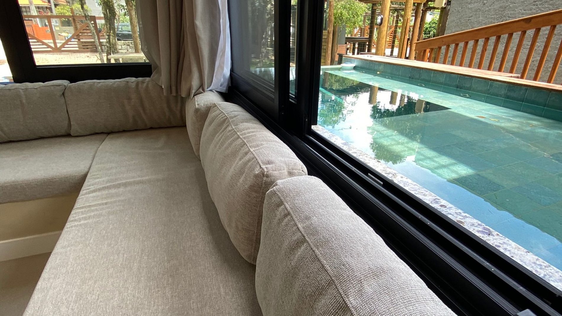 Quarto com varanda e acesso direto à piscina