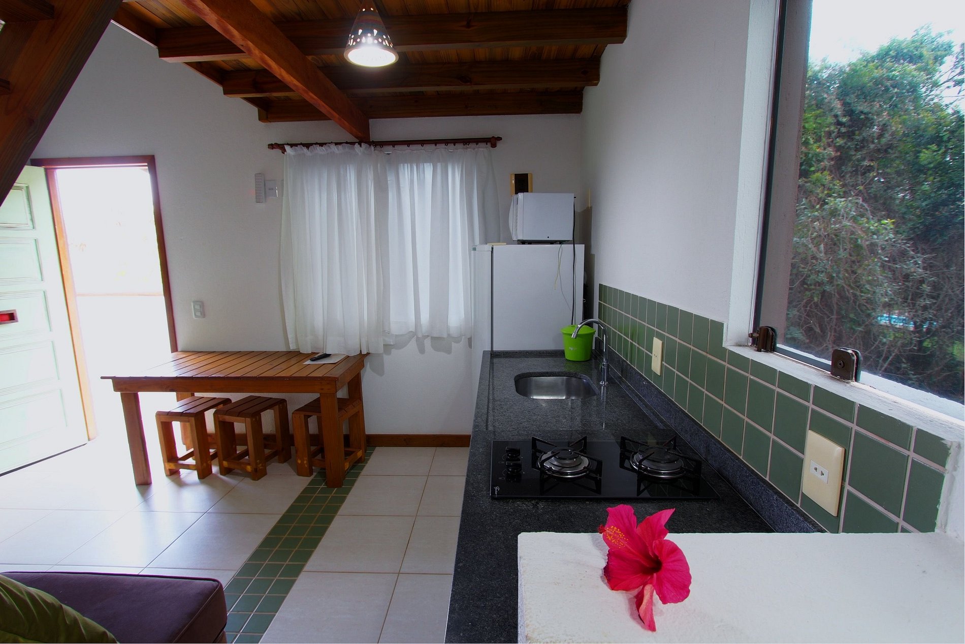 Esta unidade conta com cozinha completa, varanda e bicama de solteiro no primeiro piso. O mezanino conta com cama de casal, smart TV à cabo 32”, ar condicionado split e cofre. Para esta unidade o acesso é feito através de escada.