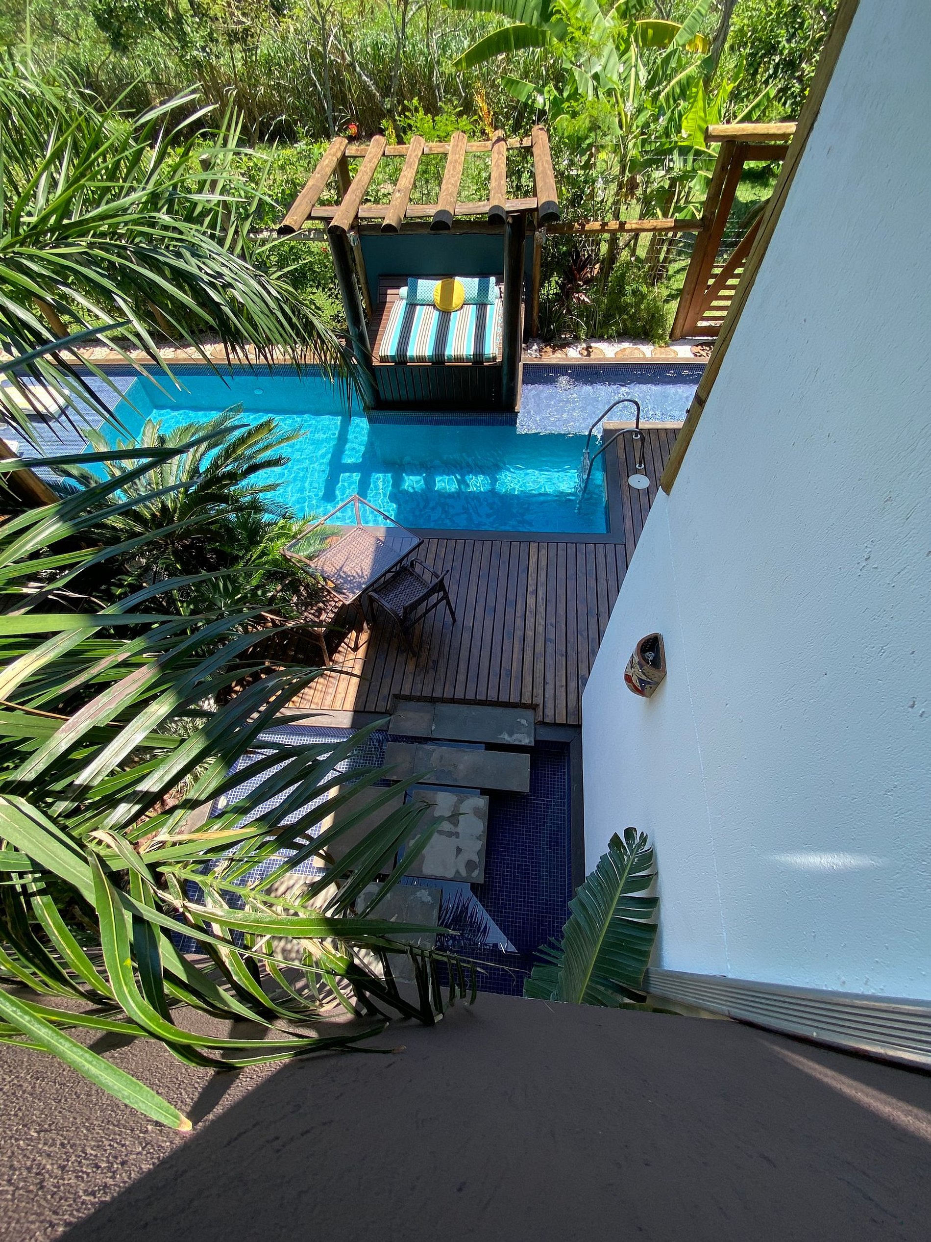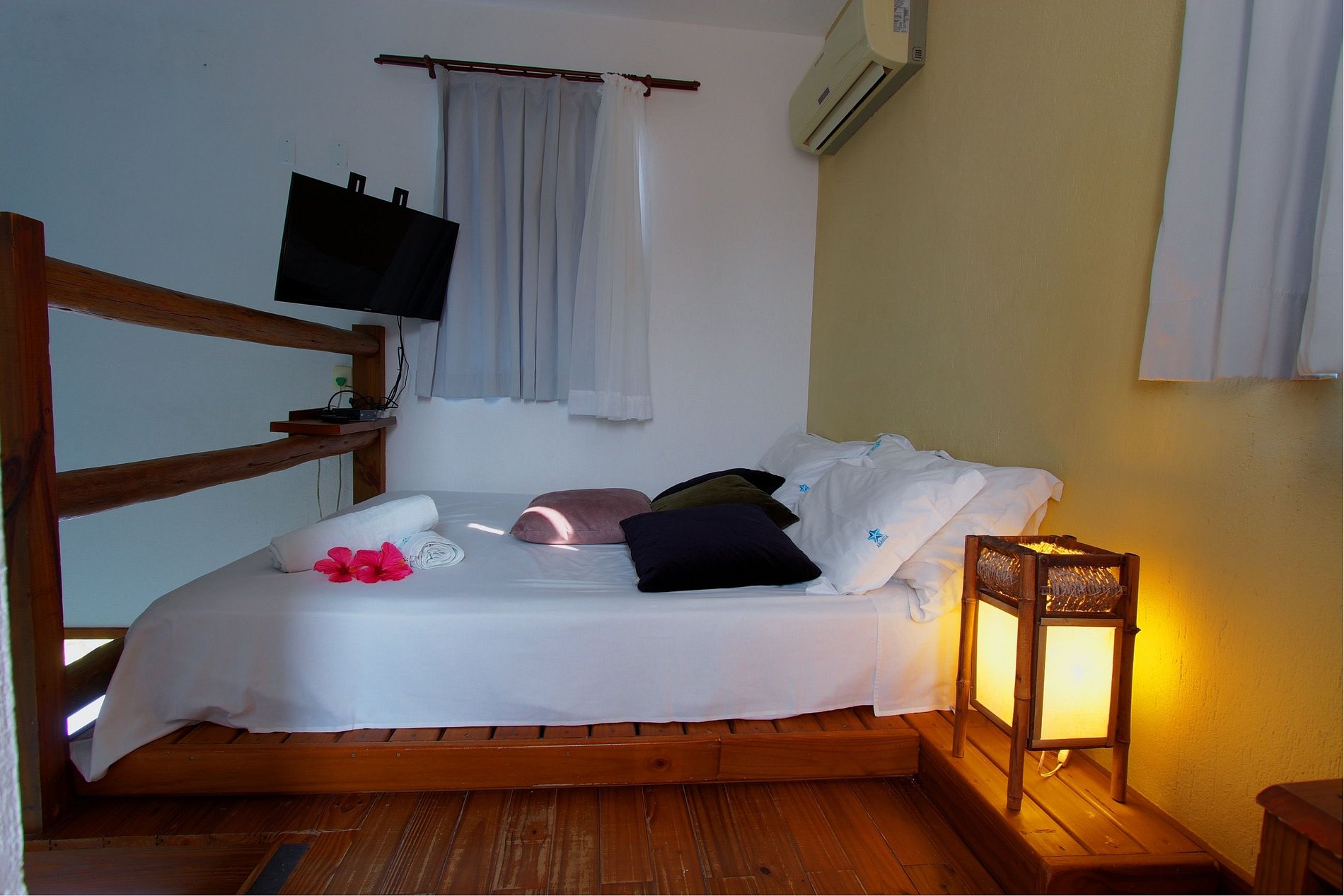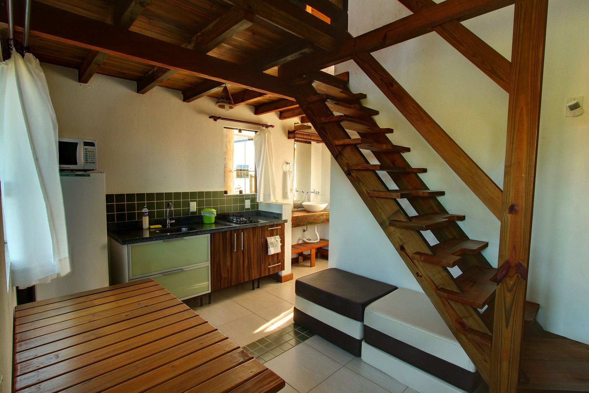 Esta unidade conta com cozinha completa, varanda e bicama de solteiro no primeiro piso. O mezanino conta com cama de casal, smart TV à cabo 32”, ar condicionado split e cofre. Para esta unidade o acesso é feito através de escada.
