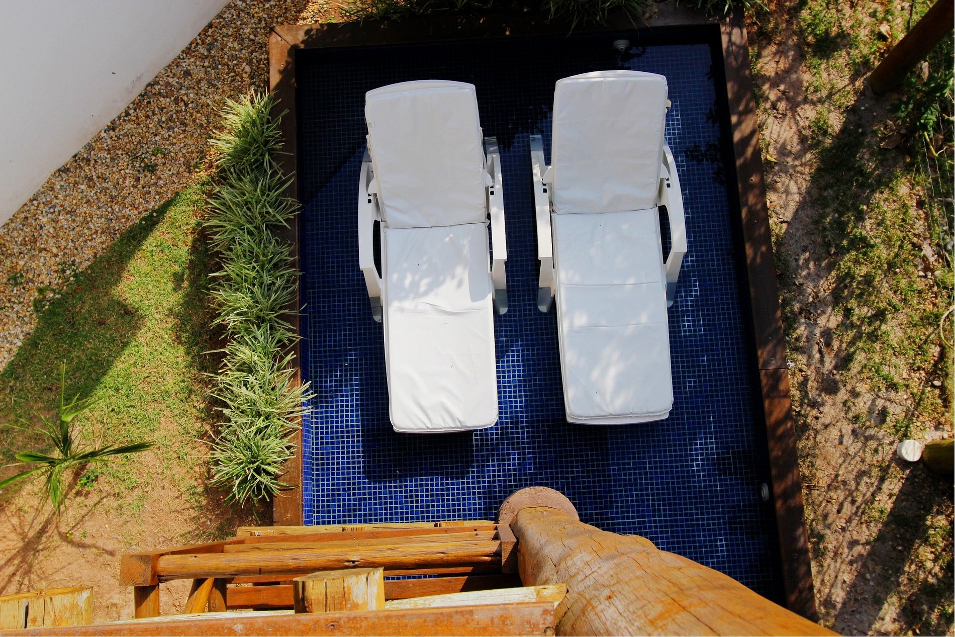 Possui saída direto para um espelho d'água com duas espreguiçadeiras exclusivas. Ideal para casal ou mesmo com filho pequeno. Também possui área externa para seu pet de pequeno porte e exclusiva.