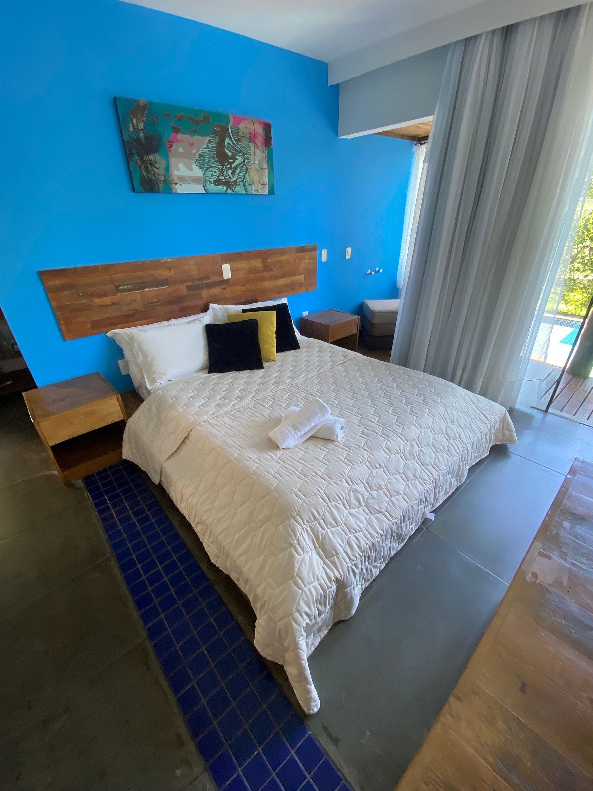 com cama Queen e vista para piscina