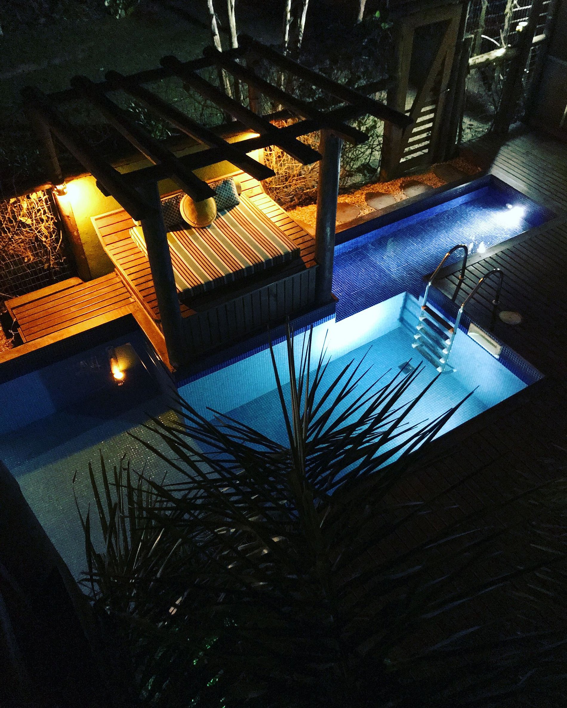Possui saída direto a um espelho d'agua com espreguiçadeiras e interligada a piscina.